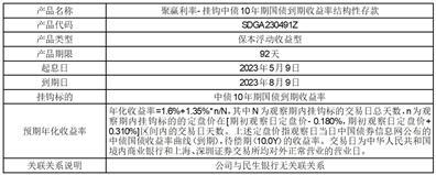 2023年5月8日公司与中国民生银行郑州分行(以下简称“民生银行”)签订了《中国民生银行结构性存款产品合同(机构版)》,公司使用暂时闲置募集资金人民币10,000万元用于购买民生银行聚赢利率-挂钩中债10年期国债到期收益率结构性存款理财产品,详细情况如下: