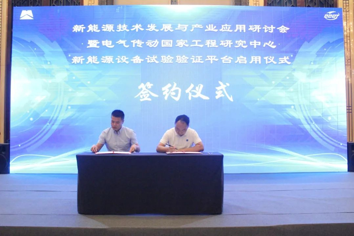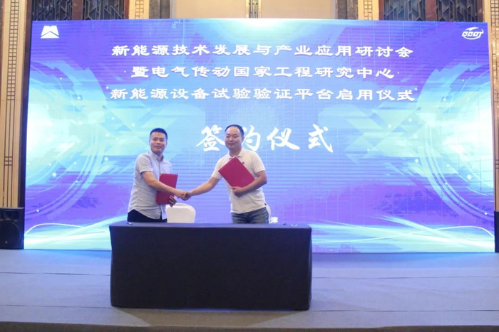 天津电气科学研究院有限公司于8月15-16日举办新能源技术发展与产业应用研讨会暨电气传动国家工程研究中心新能源设备试验验证平台启用仪式,作为新能源装备研发制造企业,新风光应邀参与研讨会,见证新能源设备试验验证平台启用仪式,并和设备试验验证平台进行了签约。