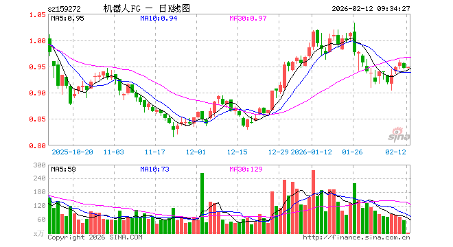 2月12日,机器人ETF富国(159272)开盘涨0.00%,报0.947元。机器人ETF富国(159272)重仓股方面,绿的谐波开盘涨0.75%,双环传动涨0.00%,机器人涨0.06%,石头科技跌0.05%,科沃斯涨0.31%,三花智控跌0.31%,拓普集团跌0.91%,鸣志电器跌0.38%,领益智造涨0.00%,埃斯顿涨0.00%。